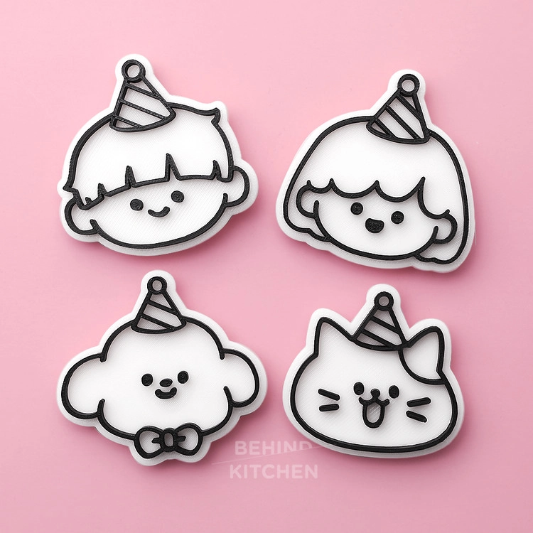 깜찍한 생일 파티 모자 쓴 강아지 쿠키커터, 주문제작 쿠키커터, 쿠키틀